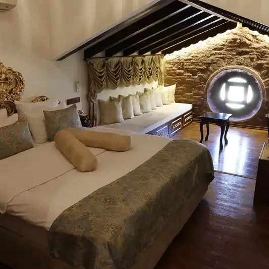 Tarihle iç içe bir atmosferde sade ama eksiksiz bir konaklama deneyimi arayan misafirlerimiz için tasarlanan Standart Odalarımız;